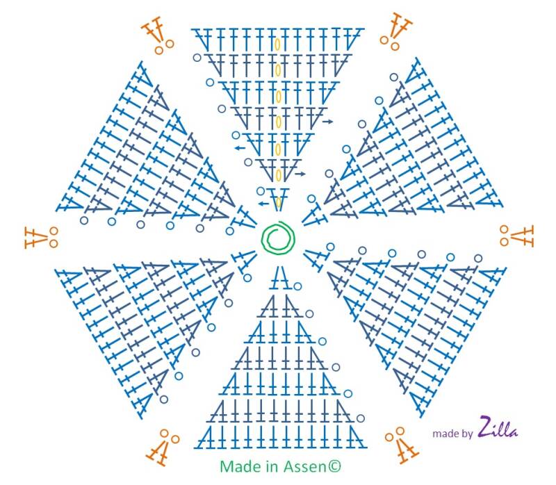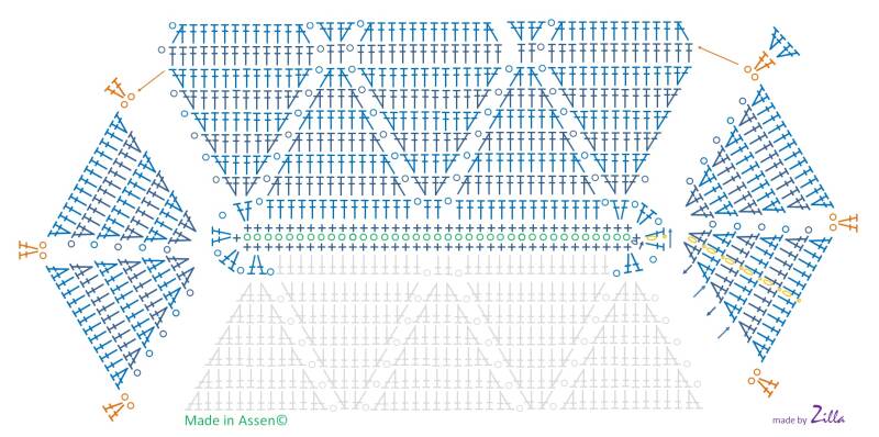doordat je het ruiten patroon niet meer haakt gaat dat vanzelf, zie diagram