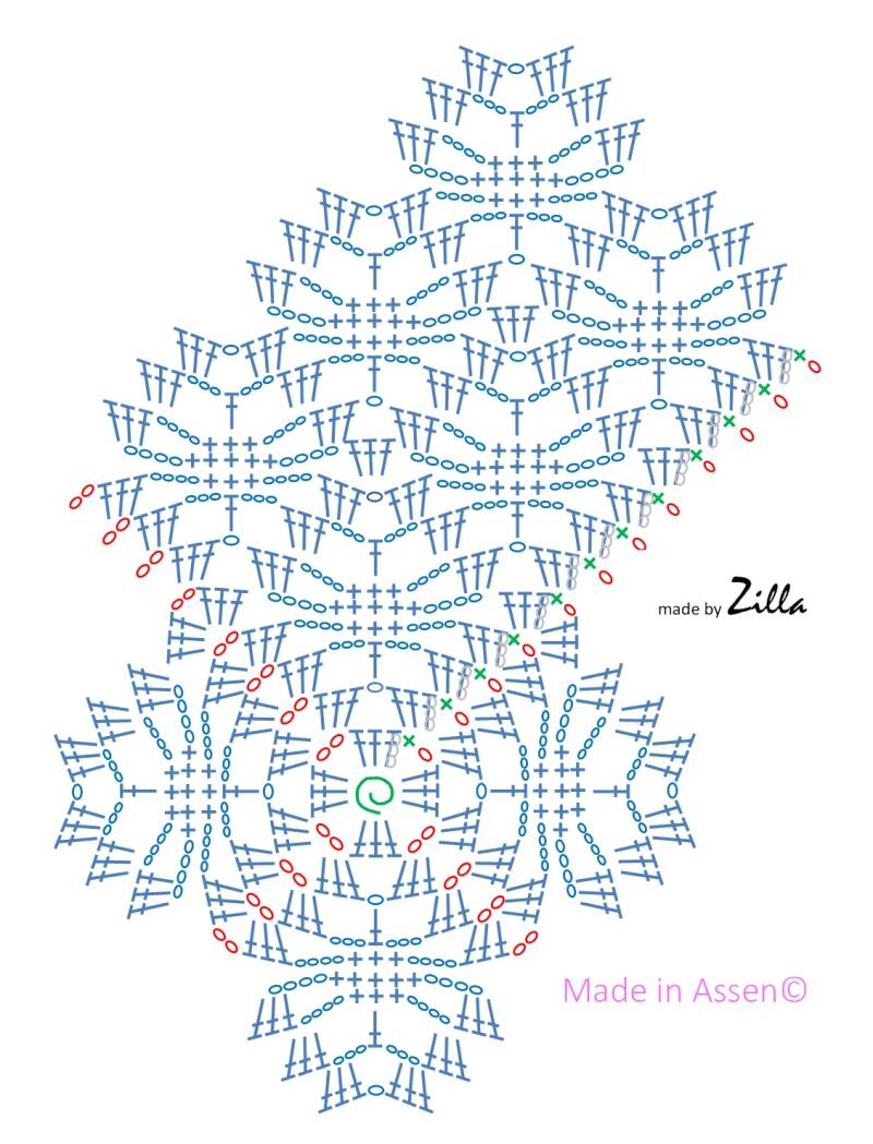 After the 2nd diagram I worked a chain single crochet from one side to the other side for the 2 handles