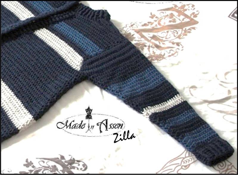 Ik heb de mouw er direct aan gehaakt, na toer 6 verder in het rond gehaakt, per toer 1 steek op de naad geminderd