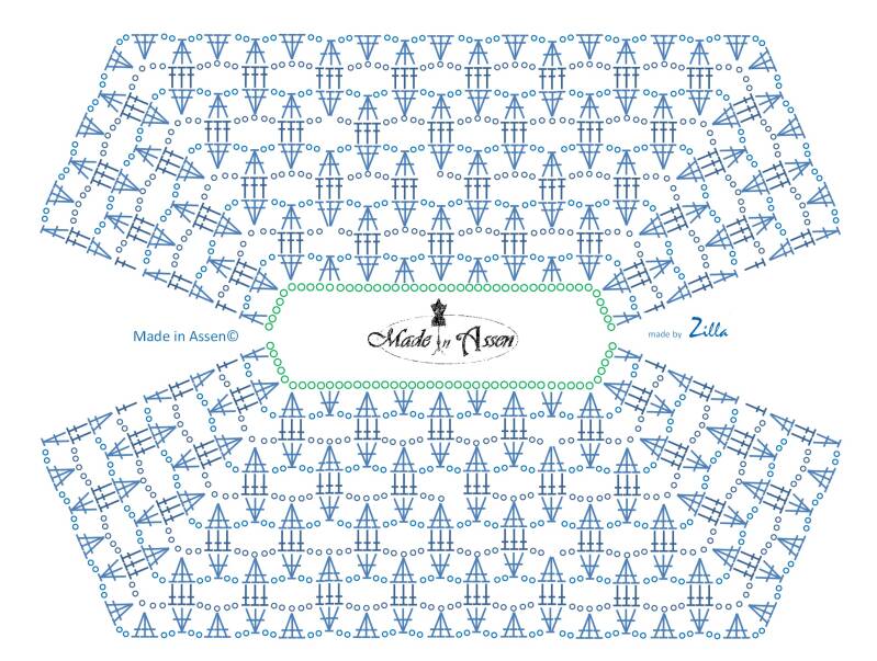 Je kunt de hoek (4x) gebruiken voor een “O” trui, shirt, tuniek, vest, vestje, bolero….