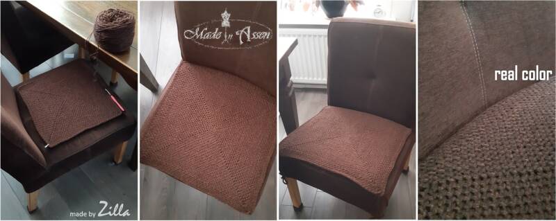 Van mijn jongste zijn stoel is de naad, die midden over de zitting loopt al tijden gescheurd, na een x aantal reparaties werd het tijd voor een dekje. De juiste kleur vinden was nog wel ff een dingentje, de een was net te donker de ander te licht. Uiteindelijk heb ik er voor gekozen om twee kleuren samen te haken en ik ben blij dat ik dat gedaan heb. Het werden de kleuren Haarlem en Veendam ColourCrafter van Scheepjes. Het goed op de foto krijgen van veraf lukt niet zo, dus kijk naar de close up voor de werkelijke kleur.