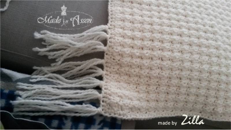 De franjes heb ik gemaakt van 4 draadjes van zo’n 40 cm dubbel gevouwen